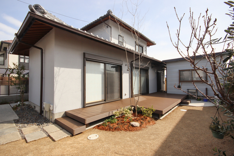 和風の佇まいを大切に、ウッドデッキと家庭菜園を楽しめる住まいに